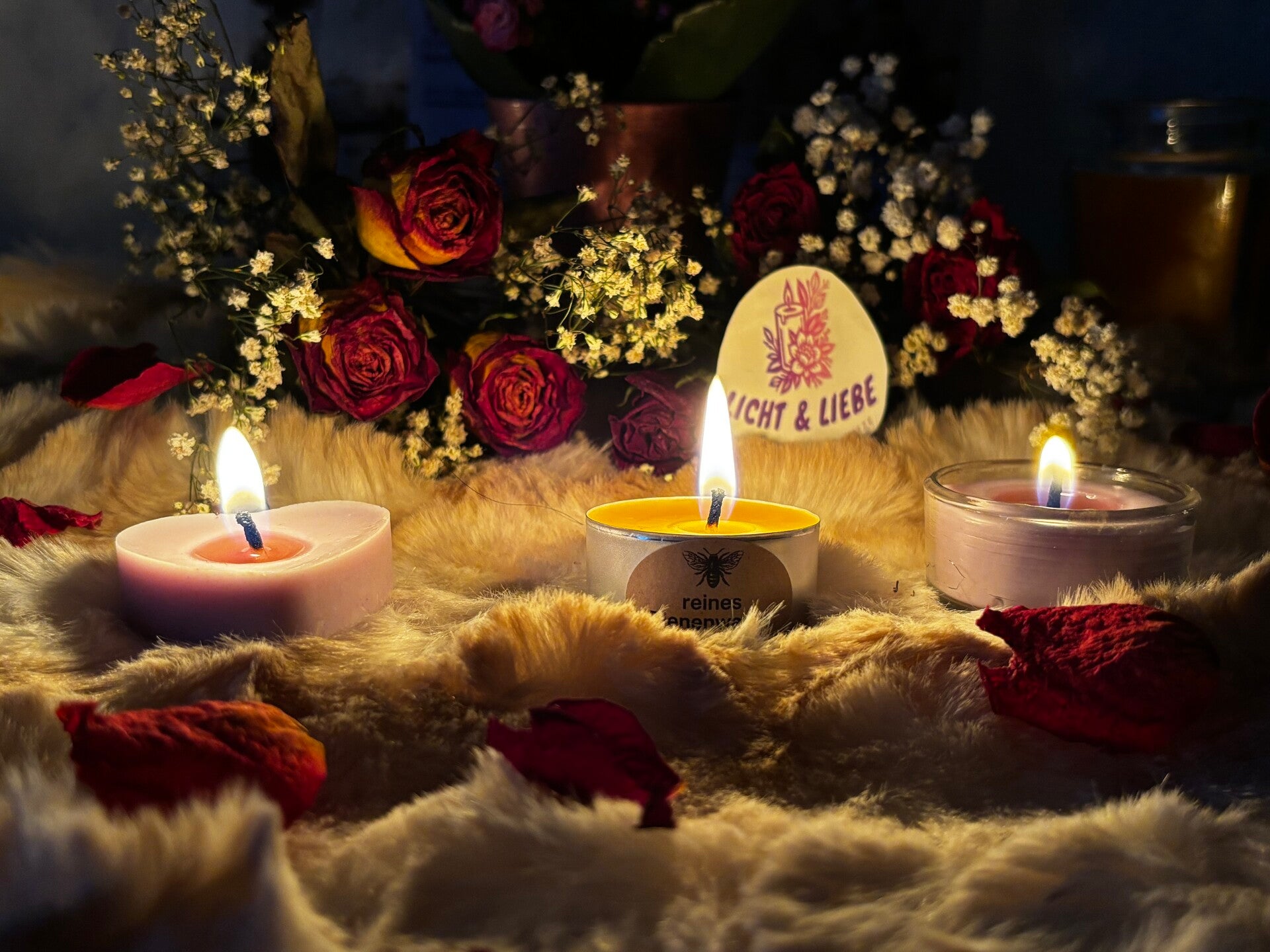 Genieße besondere Lichtmomente mit den Teelichtern von Licht & Liebe.